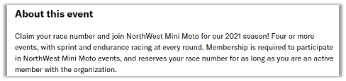 The event advertisement page is a great place to set expectations for your participants. Is club membership required to participate in your event? Do existing members receive more favorable pricing? Where can I become a member of your club? This is a great way to highlight the benefits of membership within your organization, creating an additional recurring revenue stream for your organization. And MSR can help manage that membership, issue licenses, credentials, etc!